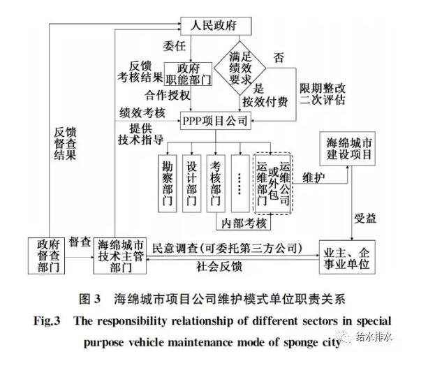 PPP模式的初衷是实现政府职能的转变,充分发挥企业的专业能力,提高项目的运营效率。发改委、财政部设定PPP项目最长的运行年限可达30年,长期稳定、良好的运营维护管理是海绵城市PPP项目的重要一环。此种模式与上述两种模式不同之处在于,政府依据项目公司的维护效果进行付费,财政部发文规定PPP项目建设成本与实际绩效考核挂钩部分不得低于30%,绩效考核的设置是保障PPP项目长期维护管理的关键。